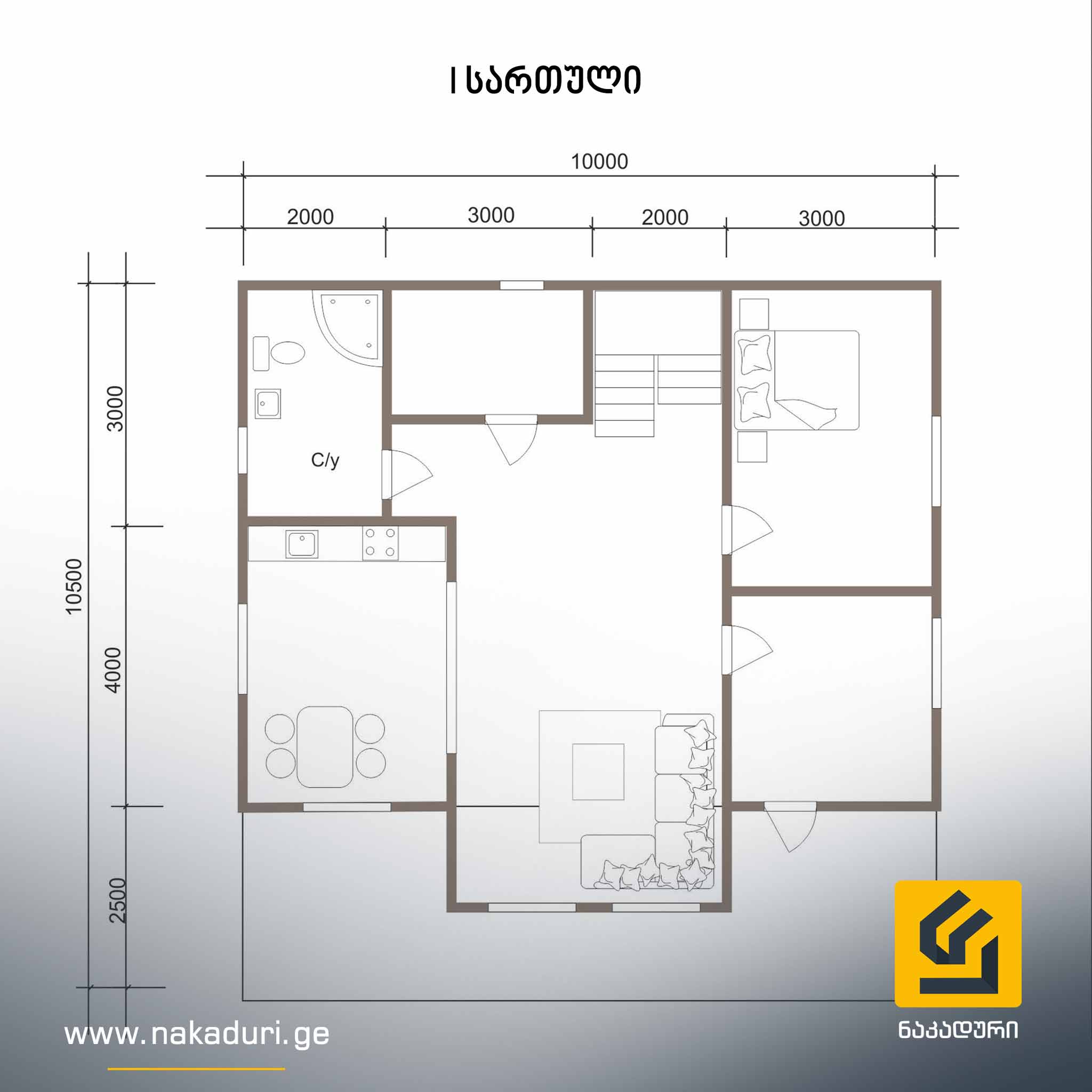 წერტილოვან საძირკველზე ეწყობა მთლიანი კარკასი და იფუთება სრული თბოიზოლაციით.