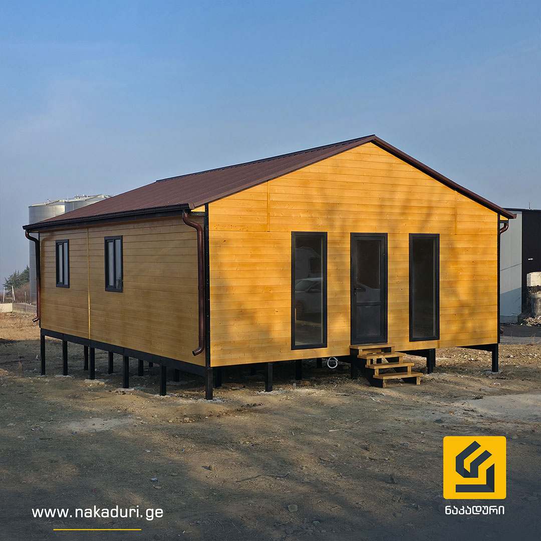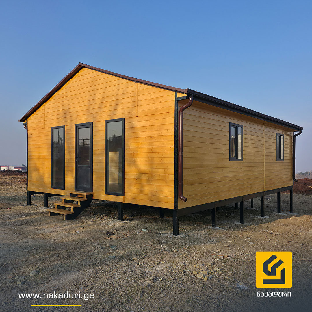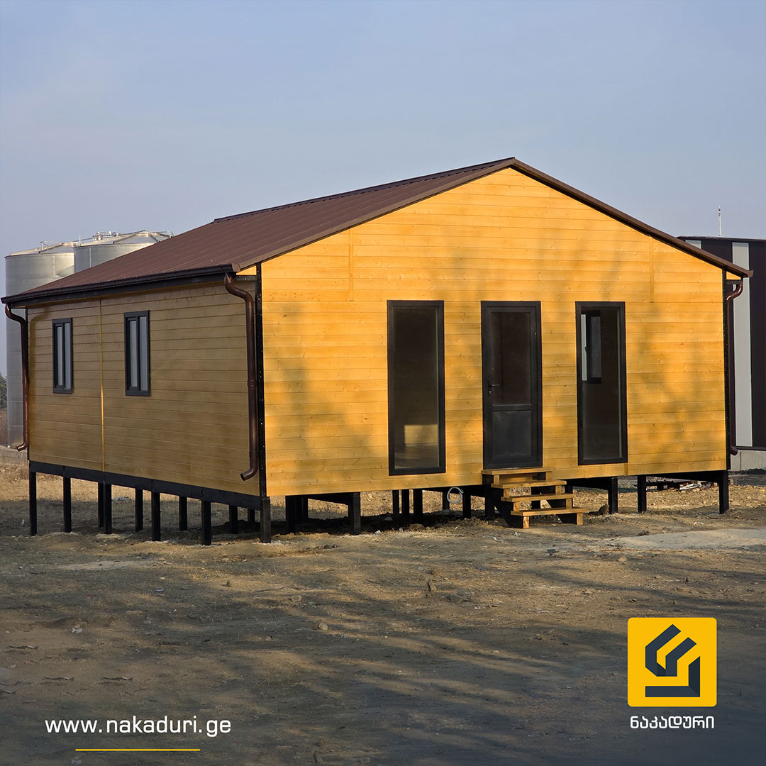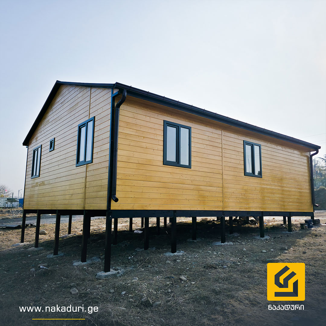 წერტილოვან საძირკველზე ეწყობა მთლიანი კარკასი და იფუთება სრული თბოიზოლაციით.