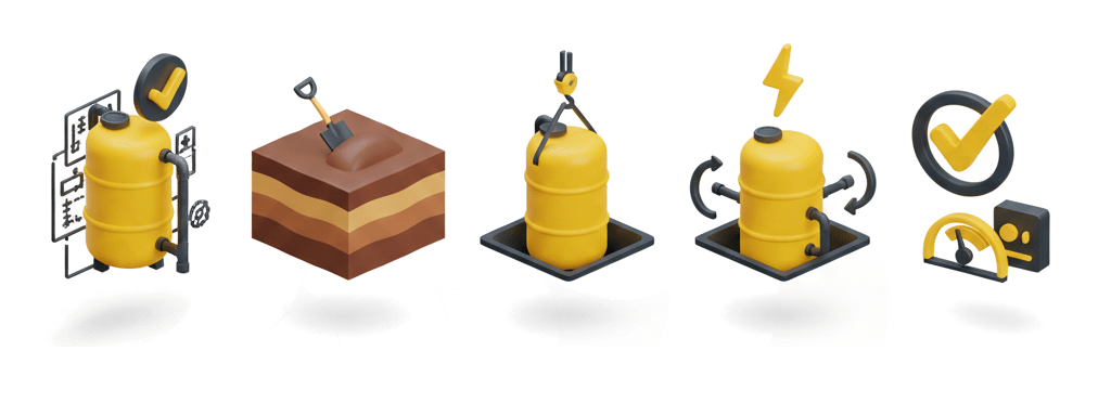 მონტაჟის პროცესი შედგება რამდენიმე მარტივი ეტაპისგან: ტანკერის შესაბამისი მოცულობის შერჩევა, ადგილის მომზადება, მიწის სამუშაოები, ბიო ტანკის ჩადგმა, მილების მიერთება, საჭიროების შემთხვევაში ელექტრო კავშირის უზრუნველყოფა და საბოლოო ტესტირება. სწორი ინსტალაციის შემდეგ სისტემა მუშაობს დამოუკიდებლად და მოითხოვს მინიმალურ მოვლას, რაც ამცირებს ხარჯებს და ზრდის მოხმარების კომფორტს.